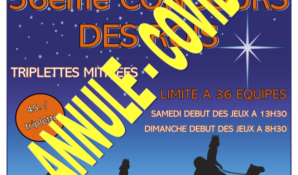 Malheureusement, dû à l'épidémie de COVID, nous nous voyons dans l'obligation d'annuler l'édition 2021 du Concours des Rois.